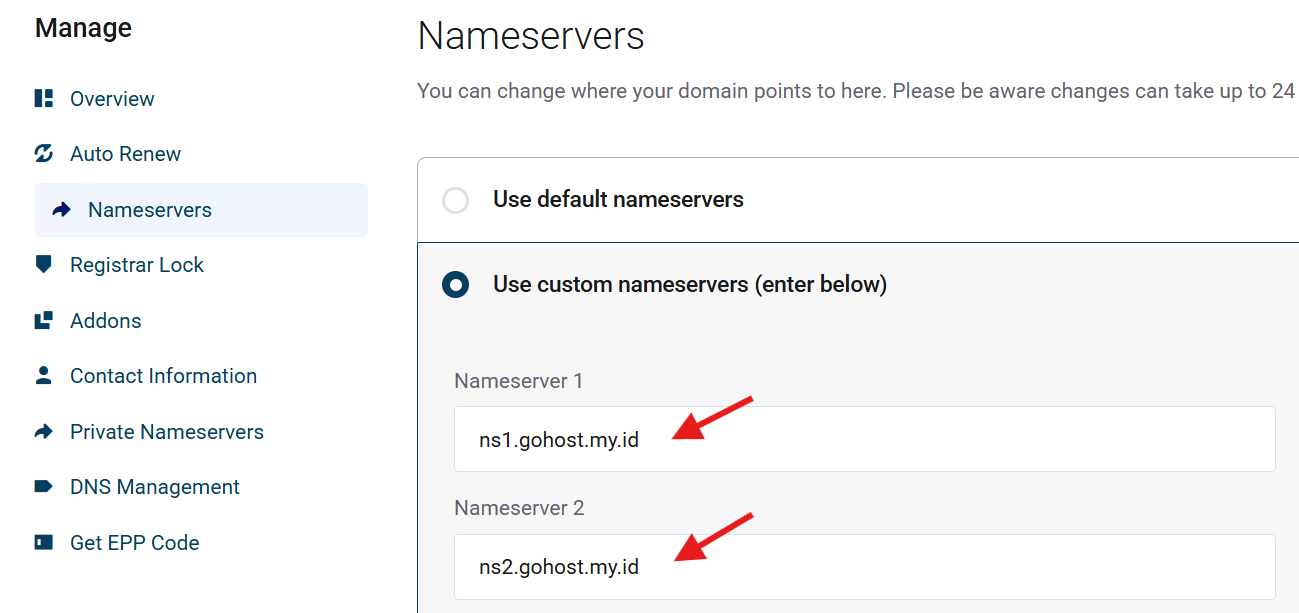 Penting: Setelah perubahan ini, akan ada masa Propagasi DNS selama 1-24 jam hingga domain terhubung sepenuhnya ke hosting baru Anda.