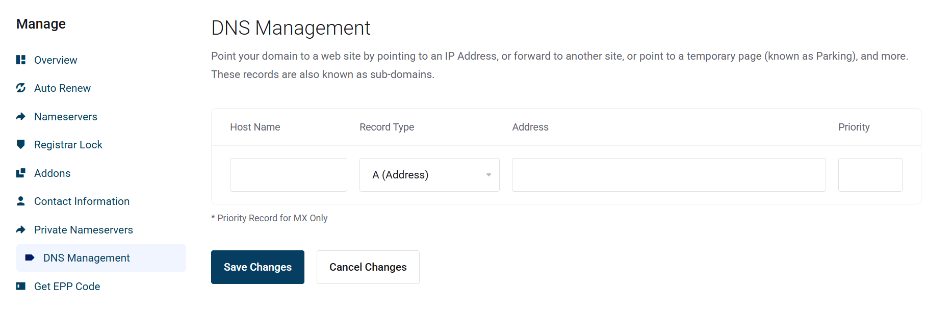 4. Klik menu DNS Management di sidebar sebelah kiri.