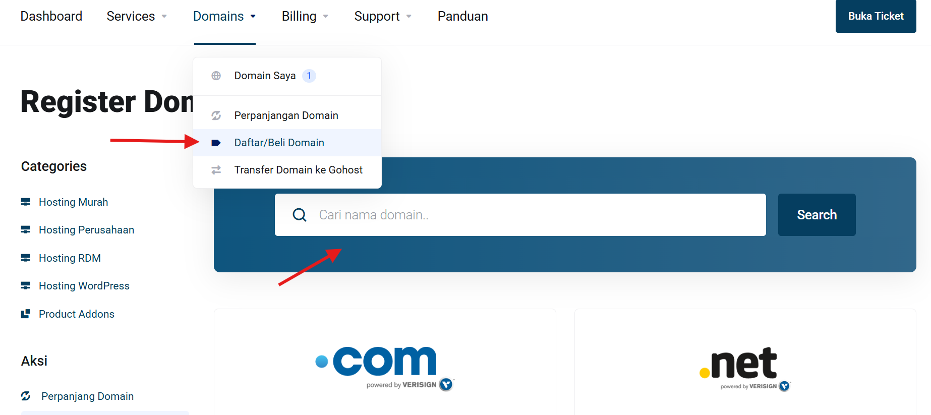 1. Buka halaman utama Gohost atau masuk ke Client Area.